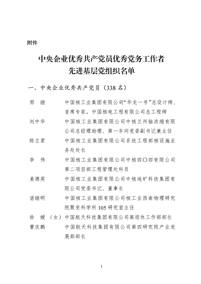 為表彰先進(jìn)、弘揚(yáng)正氣,激勵(lì)各級(jí)黨組織和廣大共產(chǎn)黨員在把握新發(fā)展階段、貫徹新發(fā)展理念、構(gòu)建新發(fā)展格局中奮發(fā)有為、建功立業(yè),國(guó)資委黨委決定,授予邢繼等338名共產(chǎn)黨員“中央企業(yè)優(yōu)秀共產(chǎn)黨員”稱號(hào)(含追授2名),授予王軍艷等205名黨務(wù)工作者“中央企業(yè)優(yōu)秀黨務(wù)工作者”稱號(hào),授予中國(guó)核工業(yè)集團(tuán)有限公司福建福清核電有限公司黨委等448個(gè)基層黨組織“中央企業(yè)先進(jìn)基層黨組織”稱號(hào)。這次表彰的優(yōu)秀個(gè)人和先進(jìn)集體是中央企業(yè)各條戰(zhàn)線上的杰出代表,他們的先進(jìn)事跡和崇高精神充分展示了新時(shí)代共產(chǎn)黨人的先進(jìn)性和純潔性,生動(dòng)詮釋了中央企業(yè)共產(chǎn)黨員的初心和使命,彰顯了國(guó)有企業(yè)先進(jìn)精神的無(wú)窮偉力。